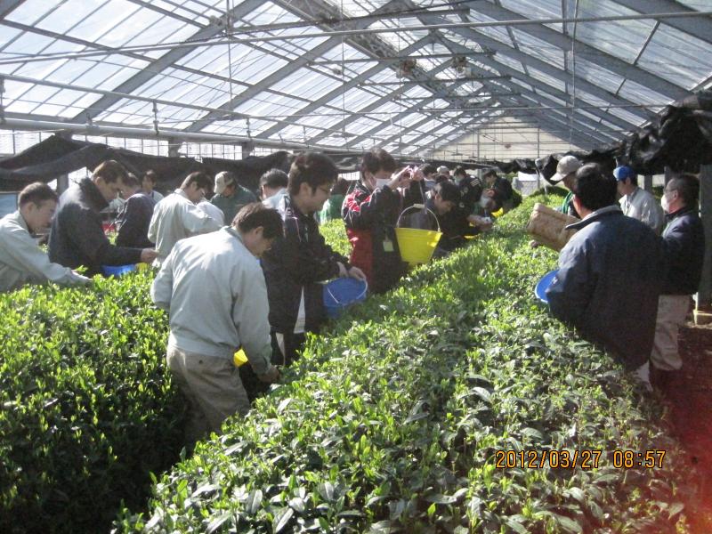 3月27日に静岡県袋井市の茶ピアで、今年も新茶の初摘みがありました。 ビニールハウスの茶畑なので一足早い摘み取りですが、 他の茶畑でも新芽が順調に育ってきている様子です。 2012年の新茶もよろしくお願いします。
