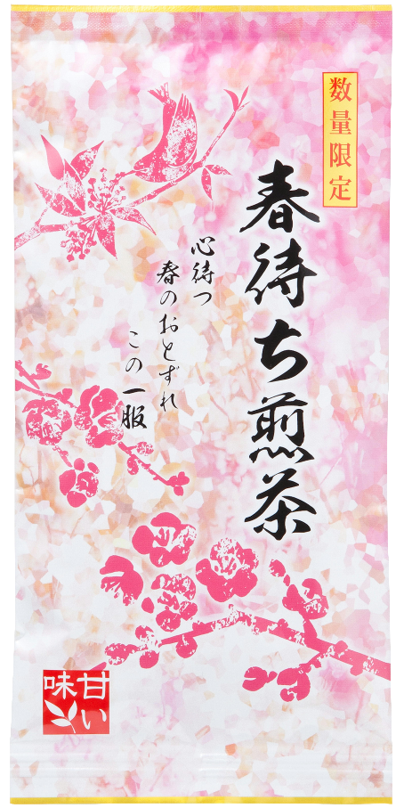 暖かい春を待ちわびるまだ少し寒い季節の限定茶です。 「春待ち煎茶 完熟一番」 やぶきた種の中蒸しタイプ。 旨味と渋味の調和したしっかりとした味わいです。 「春待ち煎茶 甘い味」 別名天然玉露といわれるあさつゆ品種の深蒸しタイプ。 甘味が強くマイルドな味わいと独特のミルキーフレーバーが特徴です。