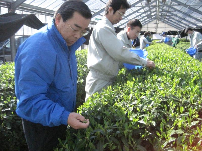 3月27日に静岡県袋井市の茶ピアで、今年も新茶の初摘みがありました。 ビニールハウスの茶畑なので一足早い摘み取りですが、 他の茶畑でも新芽が順調に育ってきている様子です。 2012年の新茶もよろしくお願いします。